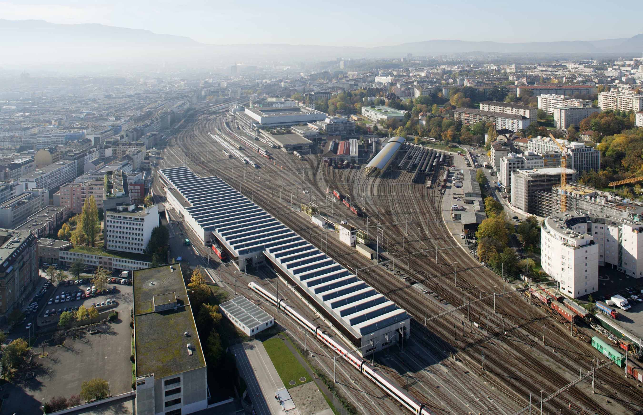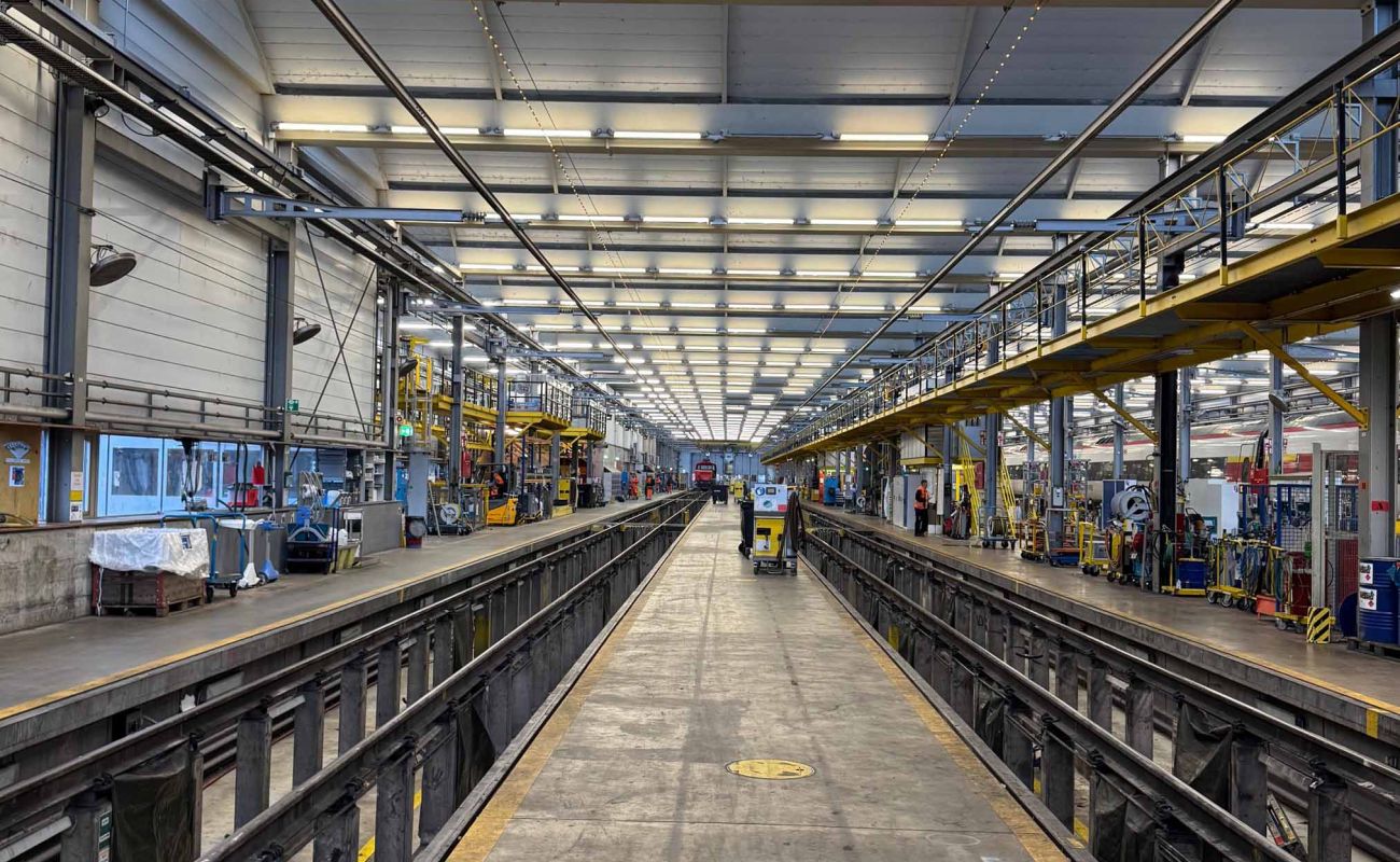 L’entretien des trains impose des contraintes comparables à celles de l’industrie automobile : les équipes doivent pouvoir accéder sous les rames pour intervenir sur les éléments techniques assurant le roulement et le confort des passagers. Puisque le levage complet d’un train n’est pas possible, le bâtiment a été conçu avec un système de rails sur pilotis, permettant au train d’avancer au-dessus de fosses de travail accessibles sur toute sa longueur.